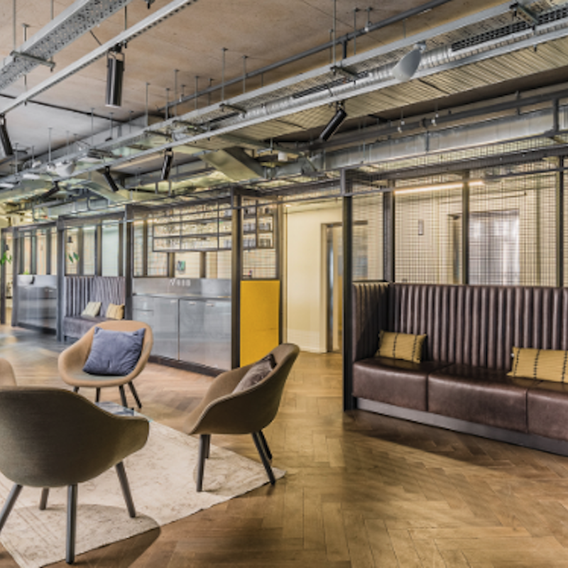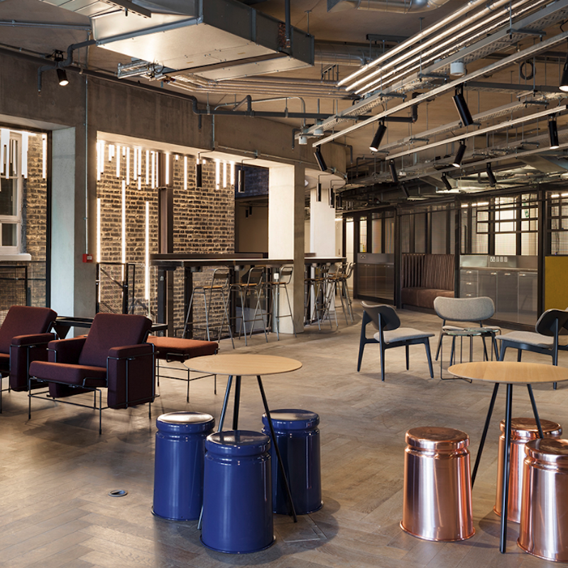 Distinctive by design – This business centre preserved one of the last remaining examples of Victorian accommodation built for railway workers, with a modern wrap-around extension that respects the buildings historic core. In collaboration with Studio Downie Architects and Studio Mackereth, the work on this building, created a range of different areas to work and focus – including raised platforms in the industrial-inspired lounge.