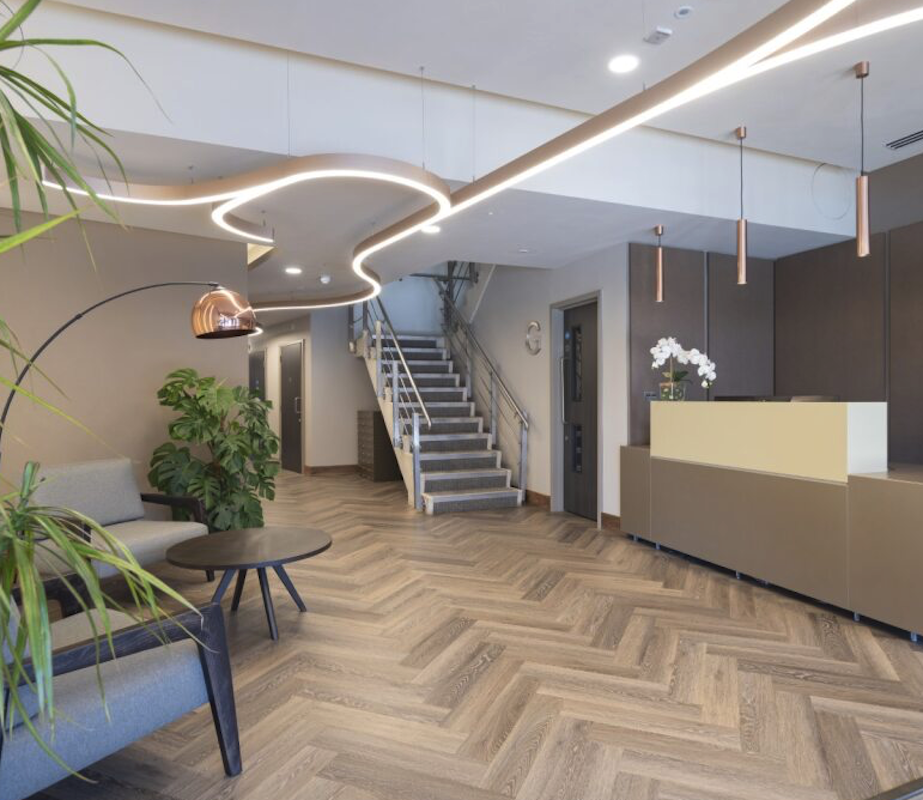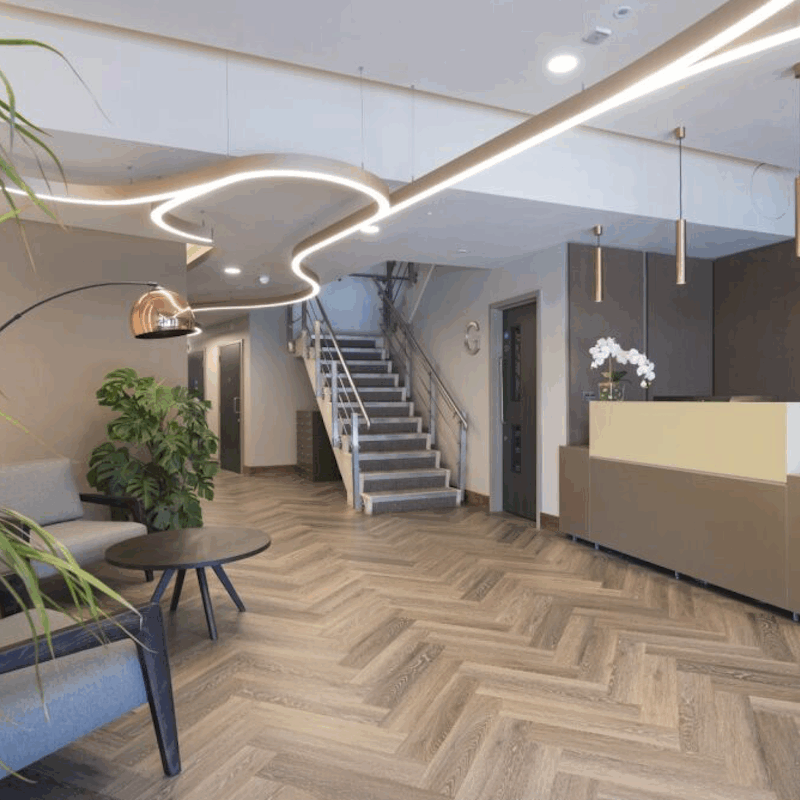 With its large and bright open plan reception area, This centre creates the ideal first impression for both clients and visitors alike. It features superfast and secure fibre connectivity across a 10Gbps connection and first-class telecoms solutions to ensure the smooth running of your business.