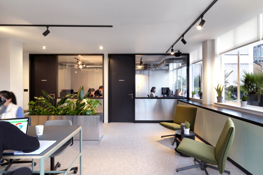 Collaboration zones – The heart of this office hub is on the third floor. The uniquely designed co-working space, studios, and meeting rooms are connected by the lounge that sits in the very centre of it all, creating a sense of unity between colleagues and members. Just a 6 minute walk from Tottenham Court Road station this location is ideally situated and connected.