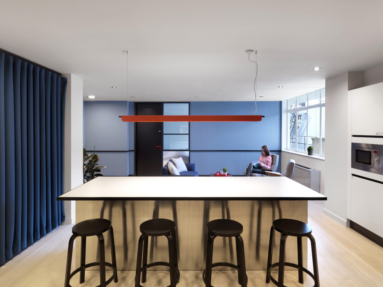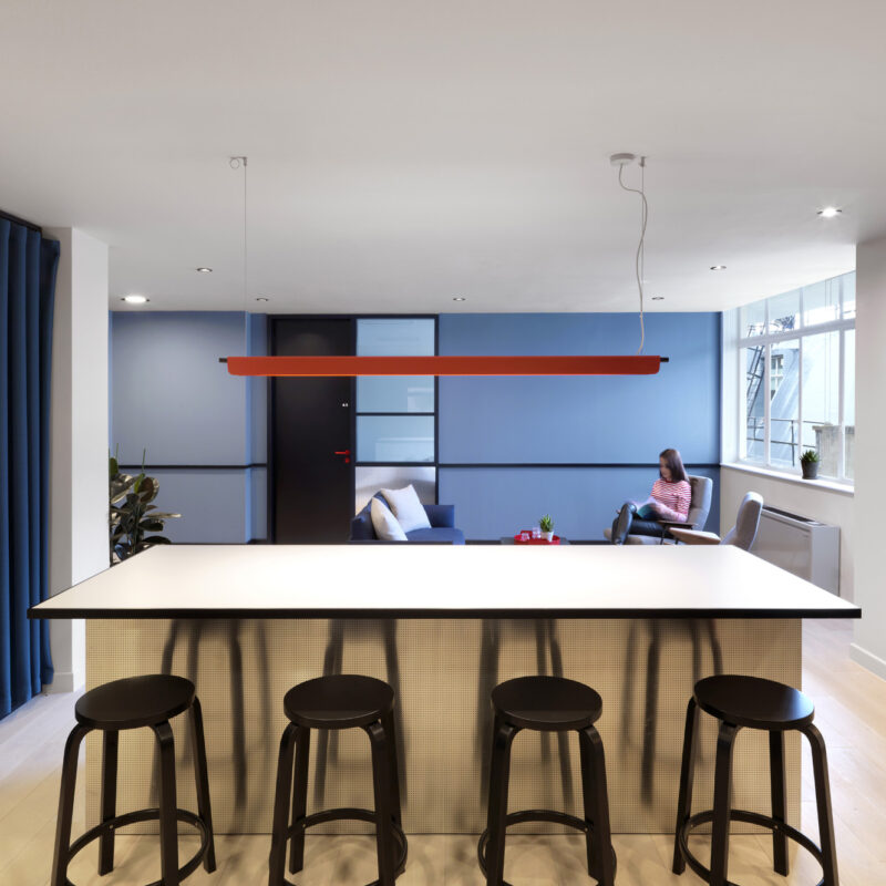 Distinctive by design – Working with architects at Universal Design Studio, this business centre is inspired by the iconic bars, restaurants and cafés of Soho for inspiration, and this project has one common theme – Pop Art. The colours and shapes that characterise the Pop Art movement became the muse for this Soho workspace, evident in the series of abstract graphic spaces created throughout.